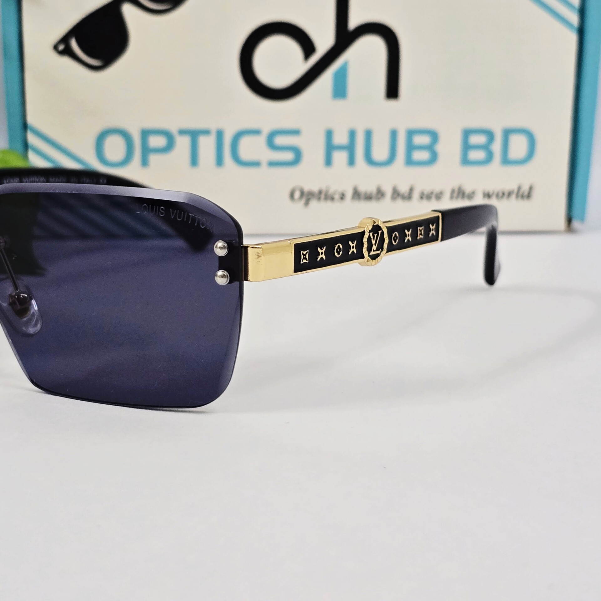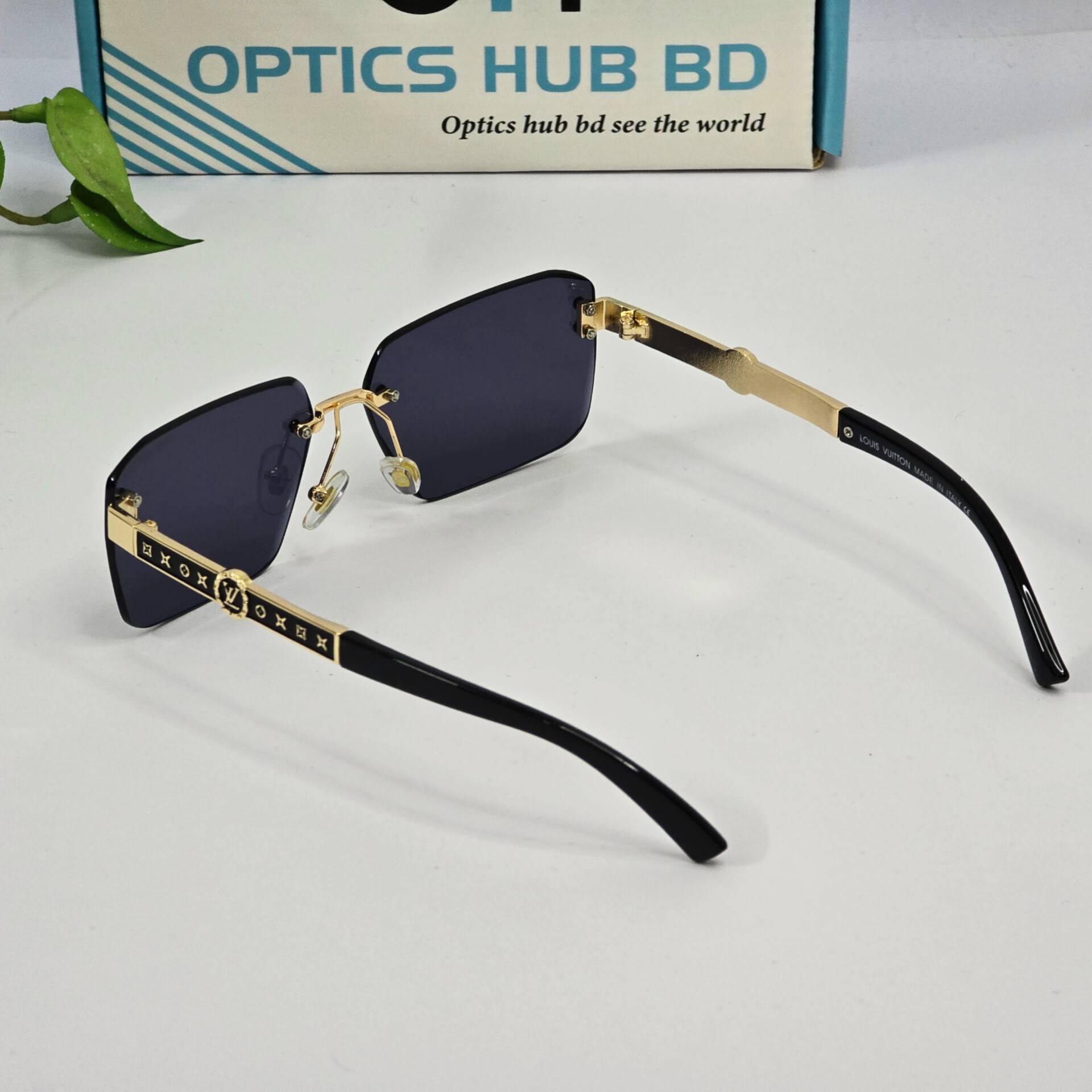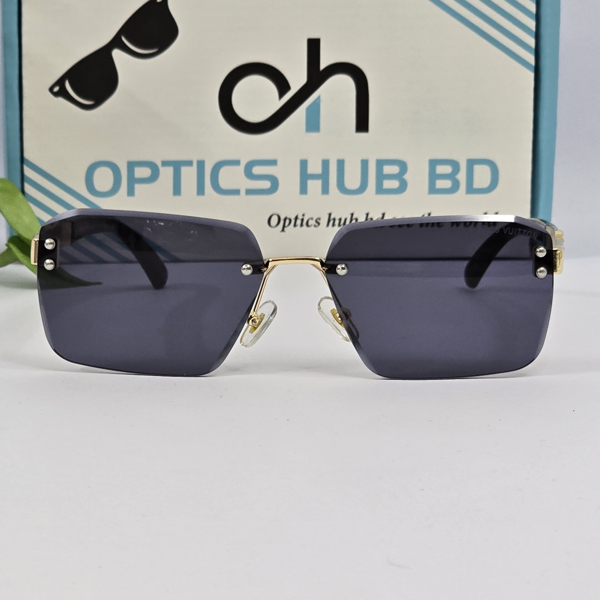 Luxury Rimless Square Sunglasses – Black & Gold