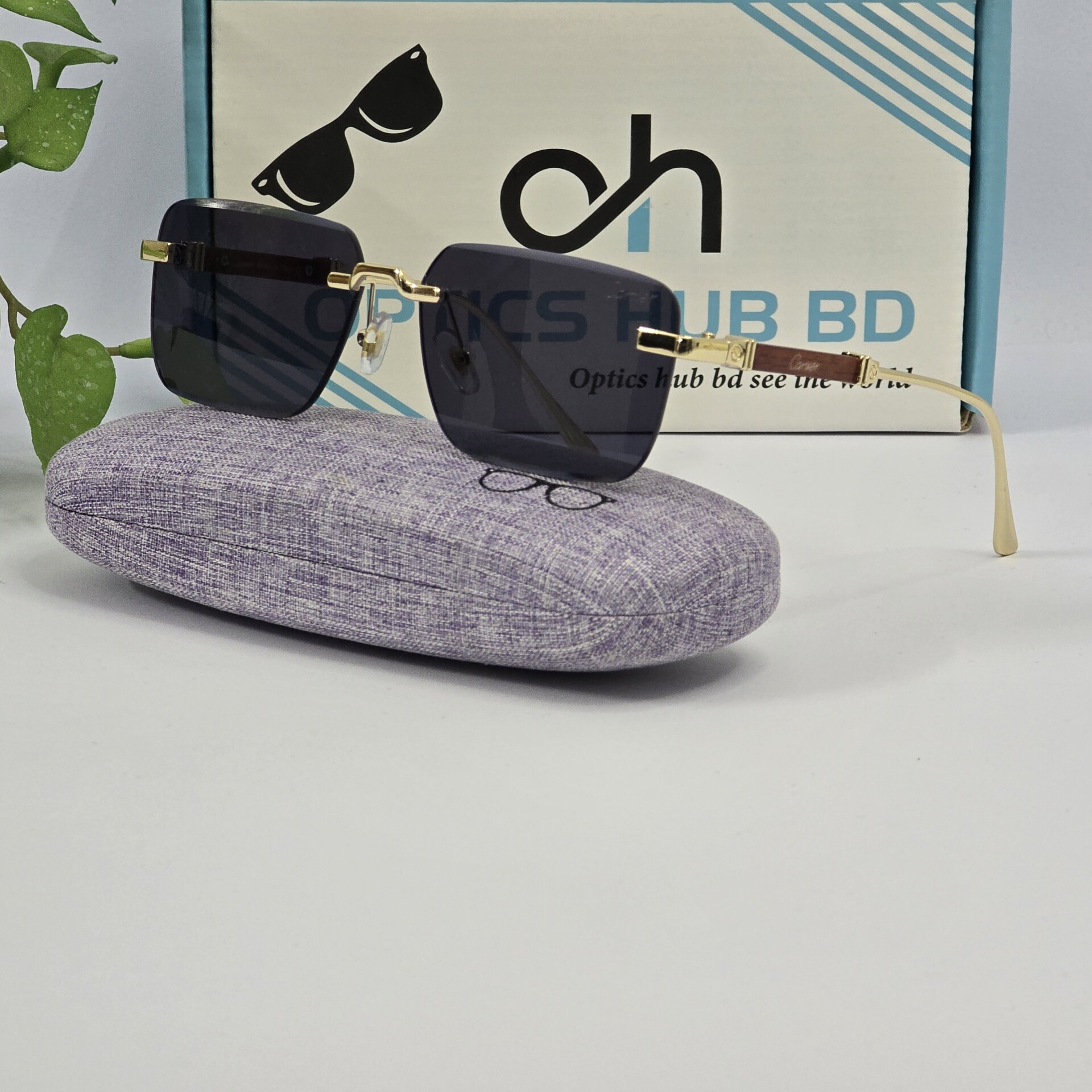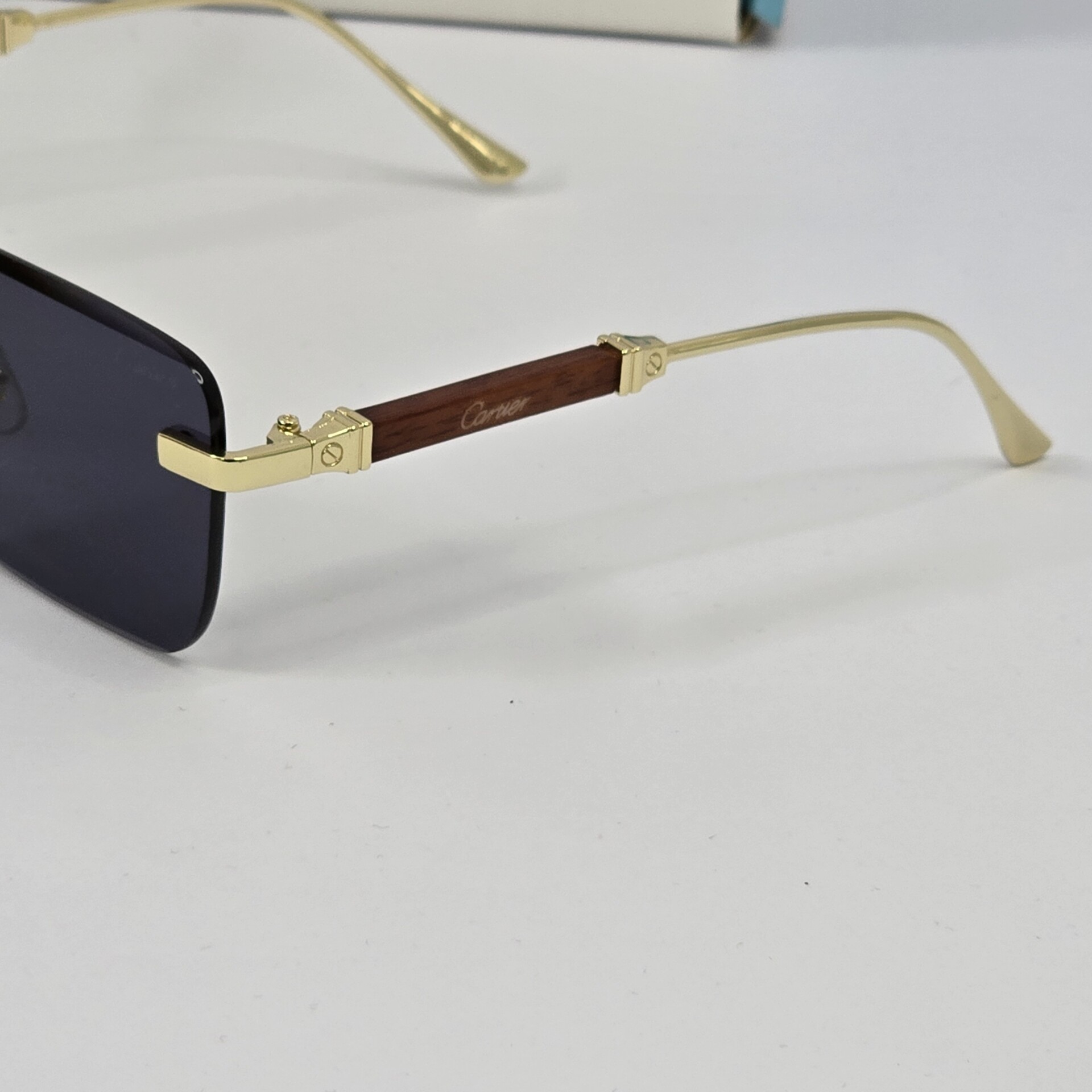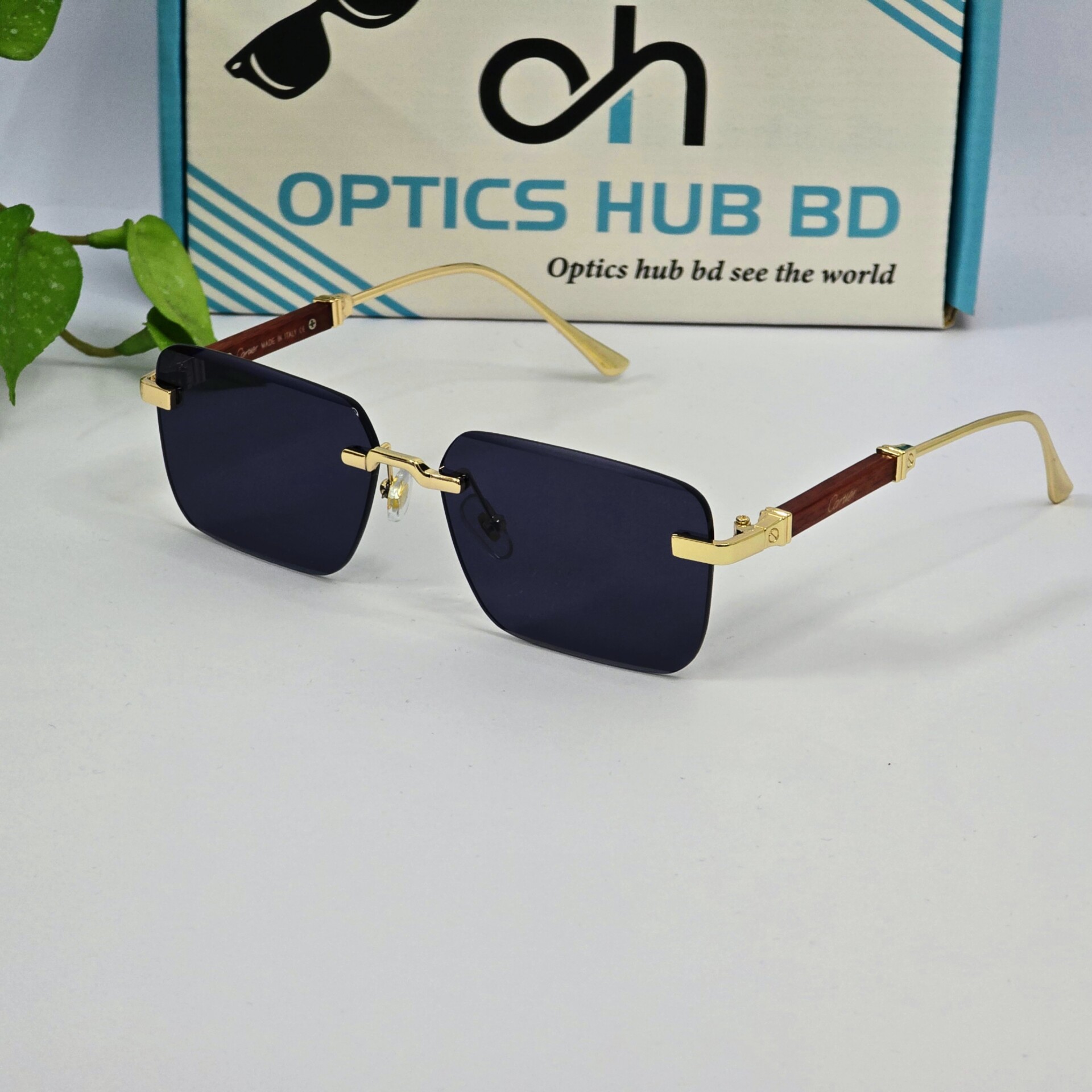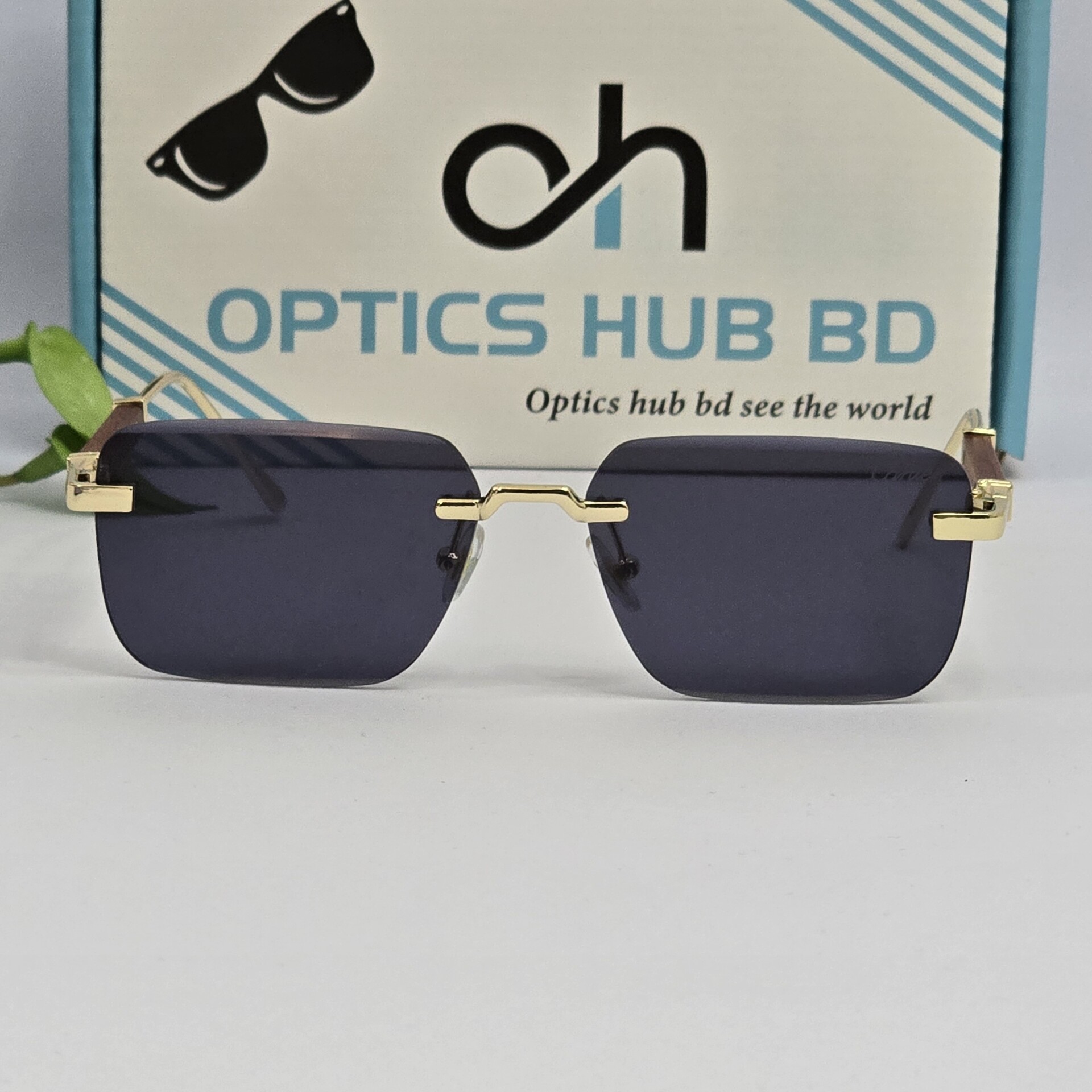 Premium Rimless Sunglass – Gold & Wood Edition