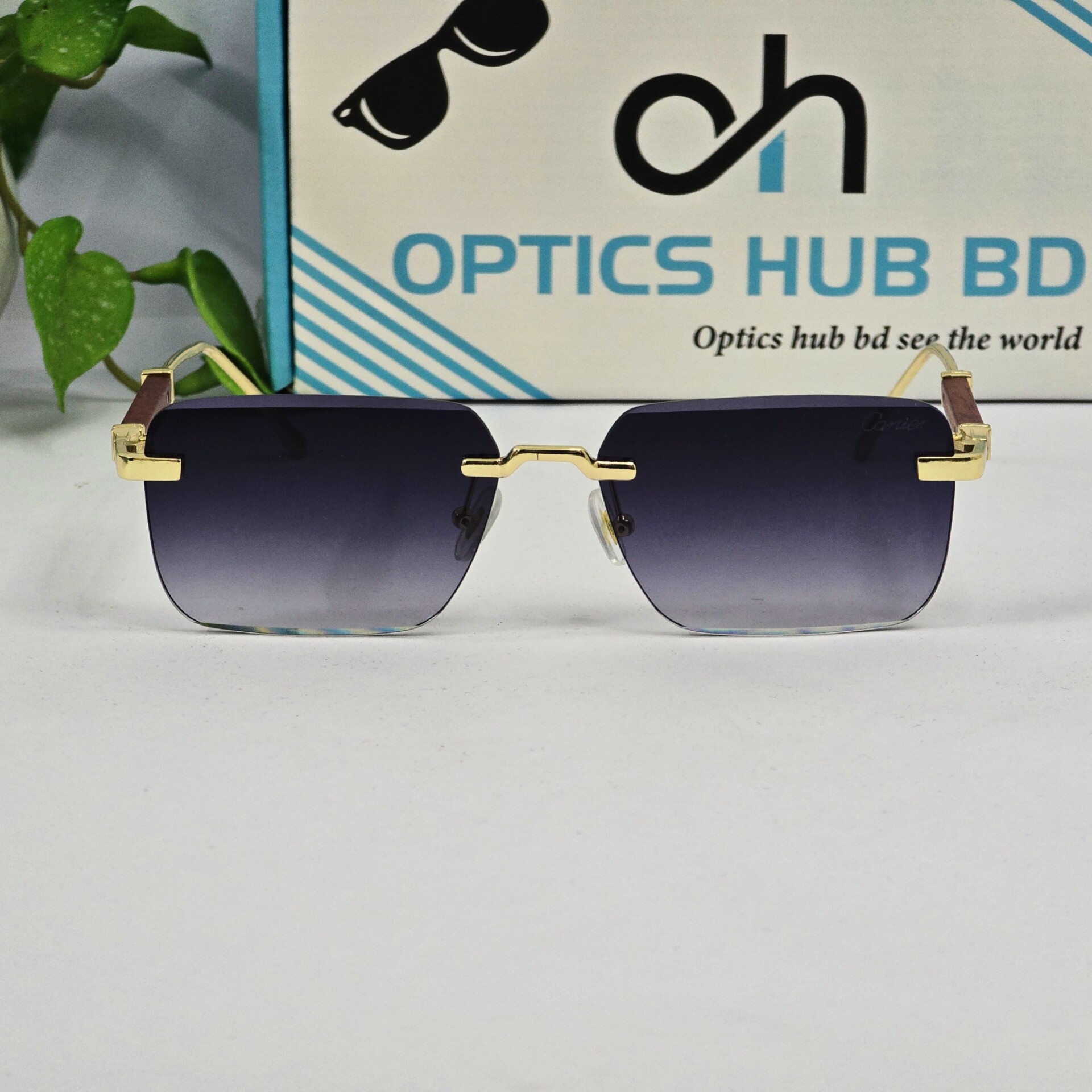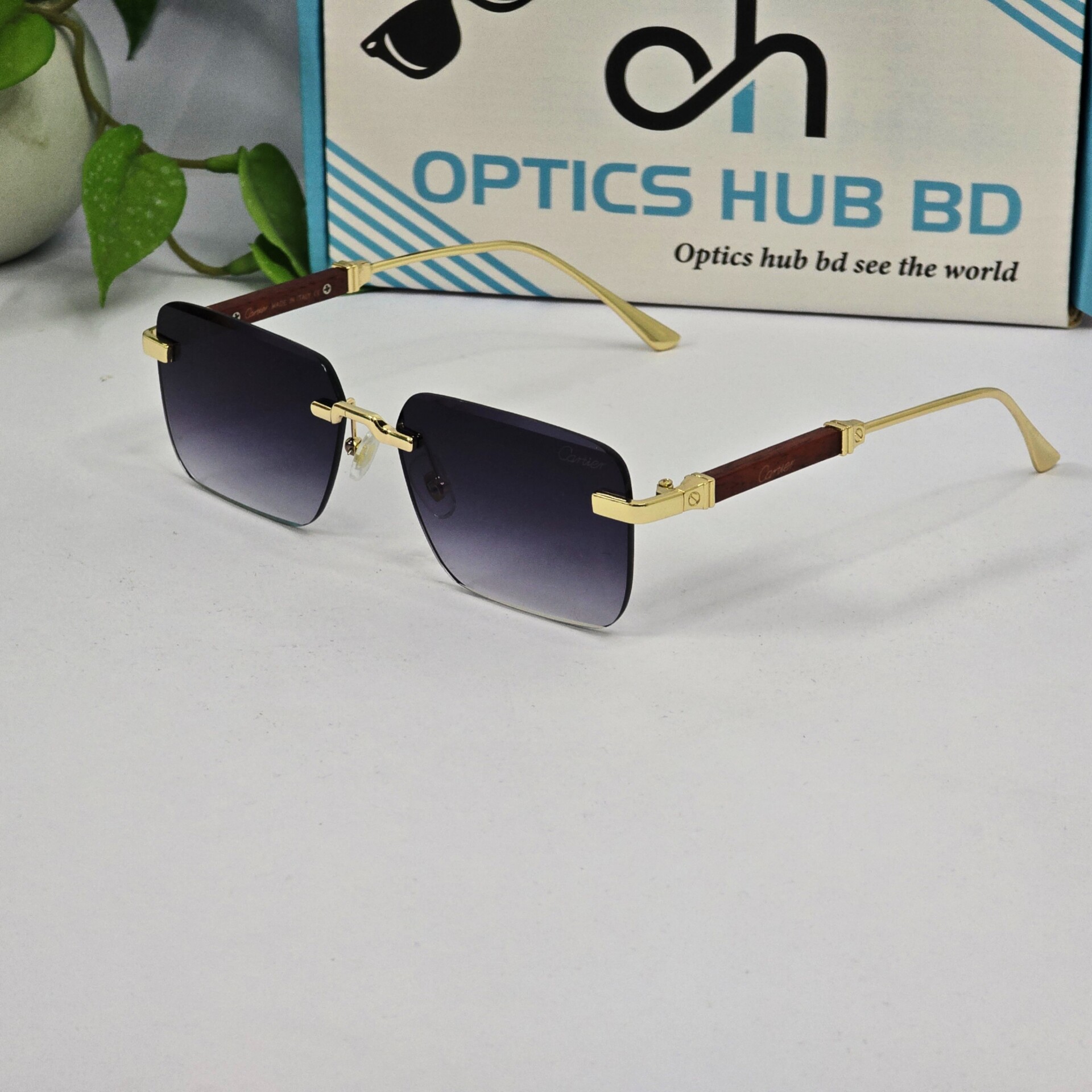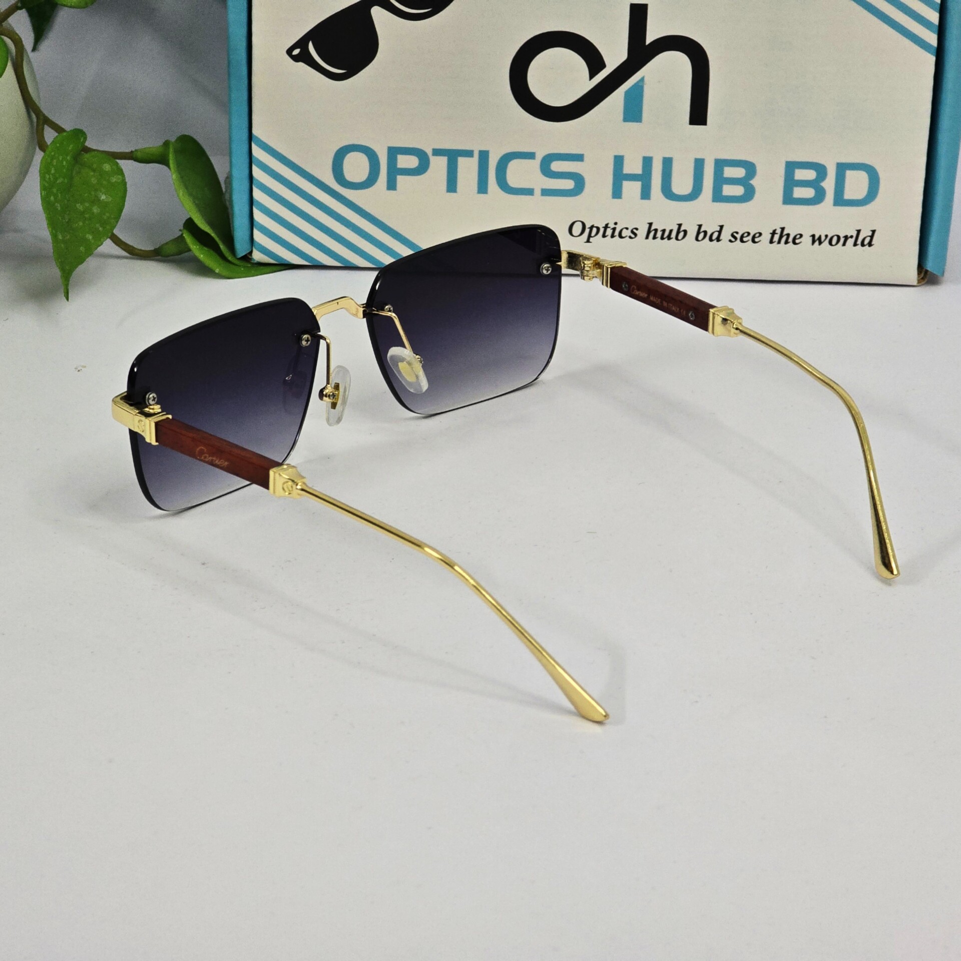 Premium Rimless Sunglass Lens Set Black – Frame Gold & Wood Edition